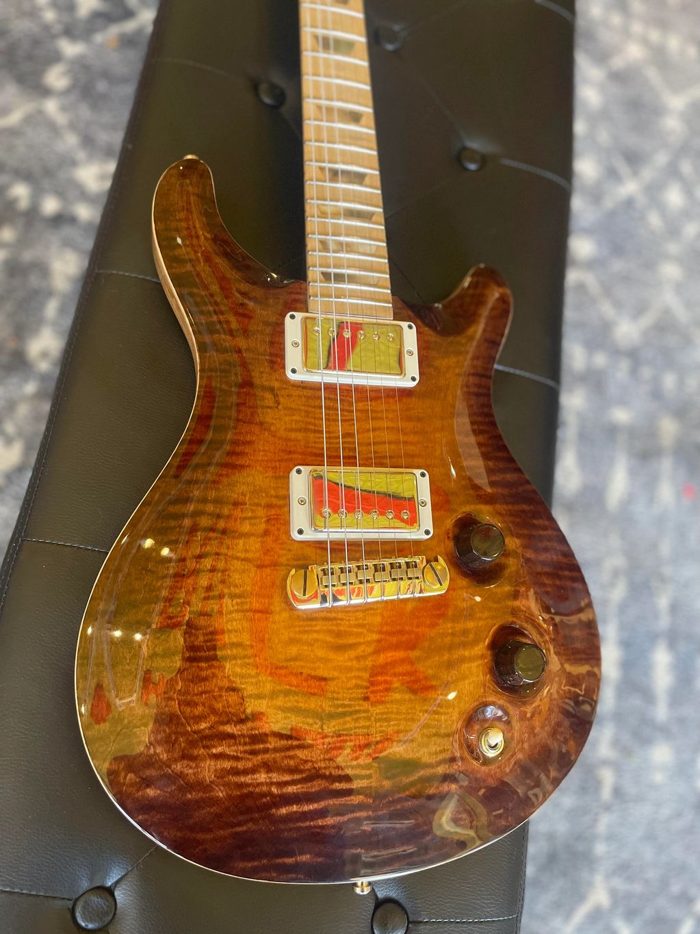 This was my first ever build! A completely original design, made with comfortability and style in mind. I still love this guitar and play it all the time. I have since made several on commission and would be happy to customize one for you, as well!